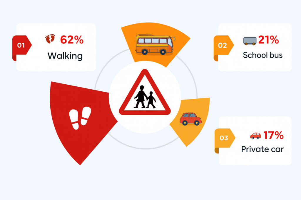 This is not an isolated case; approximately 70% of children in the area walk to school, according to a survey distributed by the investigation’s authors, which included 33 families.