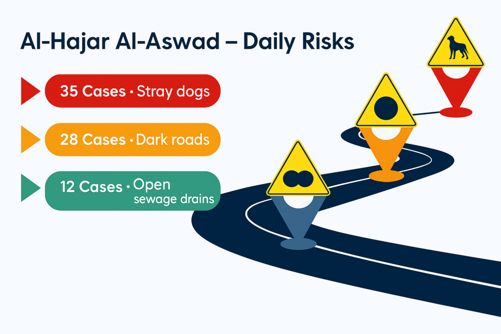 | Safe Environment | Dark roads, stray dogs, harassment, traffic jams, unpaved roads | Rubbles, open sewage, risk of kidnapping and falls |